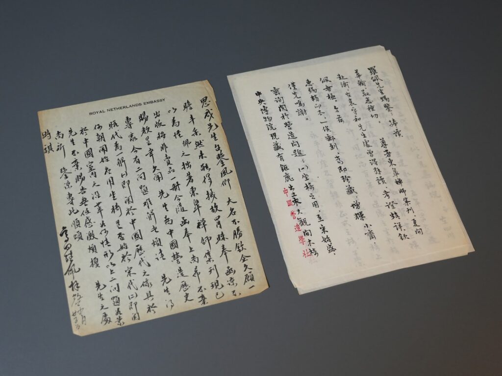 Correspondentie tussen Van Gulik (links) en Liang Sicheng (1901-1972) (recht). Zoon van Liang Qichao (1873-1929), Liang Sicheng was architect, foto Universitaire Bibliotheken Leiden.