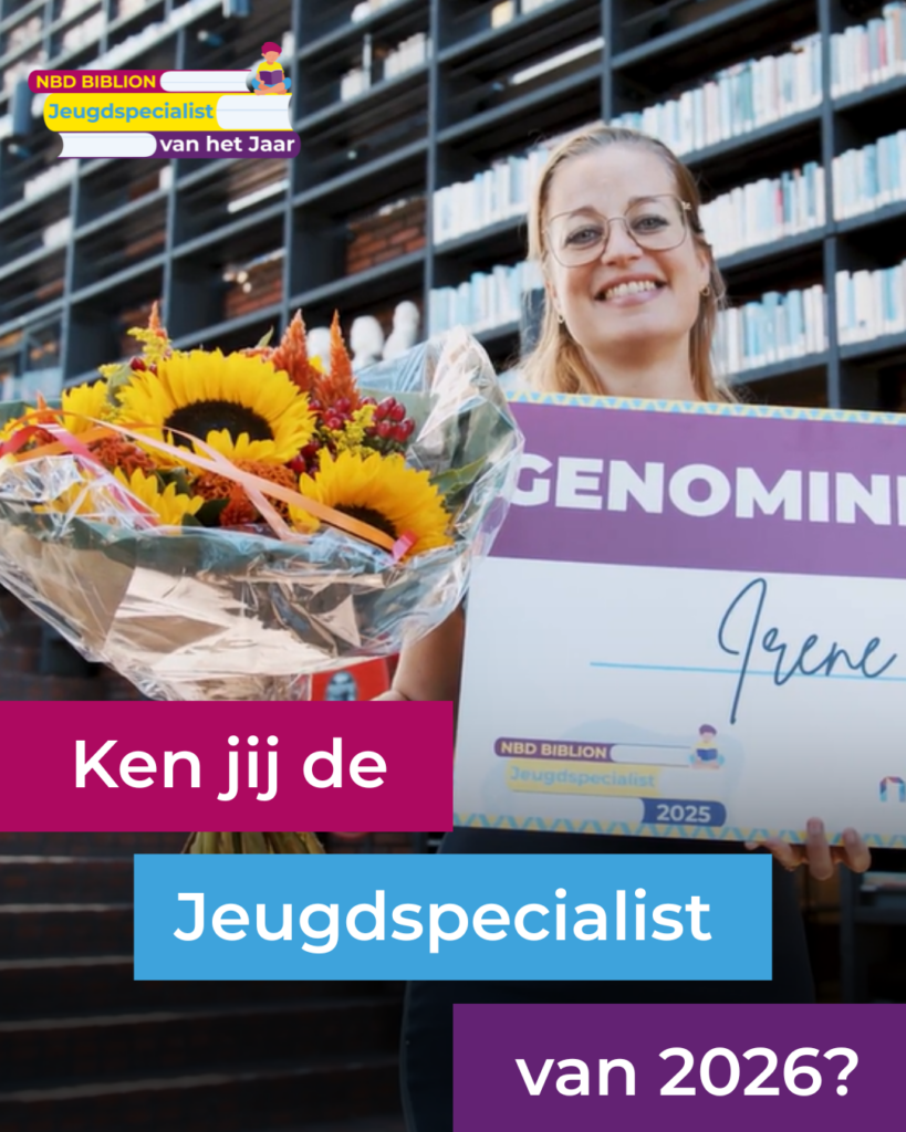 Ook dit jaar organiseren NBD Biblion, Stichting CPNB en Bibliotheekblad de verkiezing voor de NBD Biblion jeugdspecialist van het Jaar. De inschrijving is inmiddels weer geopend en loopt t/m dinsdag 5 mei. Ken jij een expert in literatuureducatie en leesbevordering? Iemand die kinderen, ouders en leerkrachten weet te verbinden én te inspireren? Nomineer deze bevlogen collega dan nu!