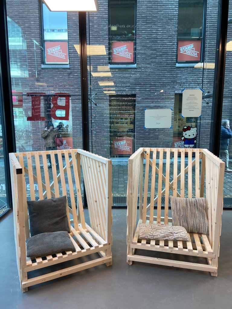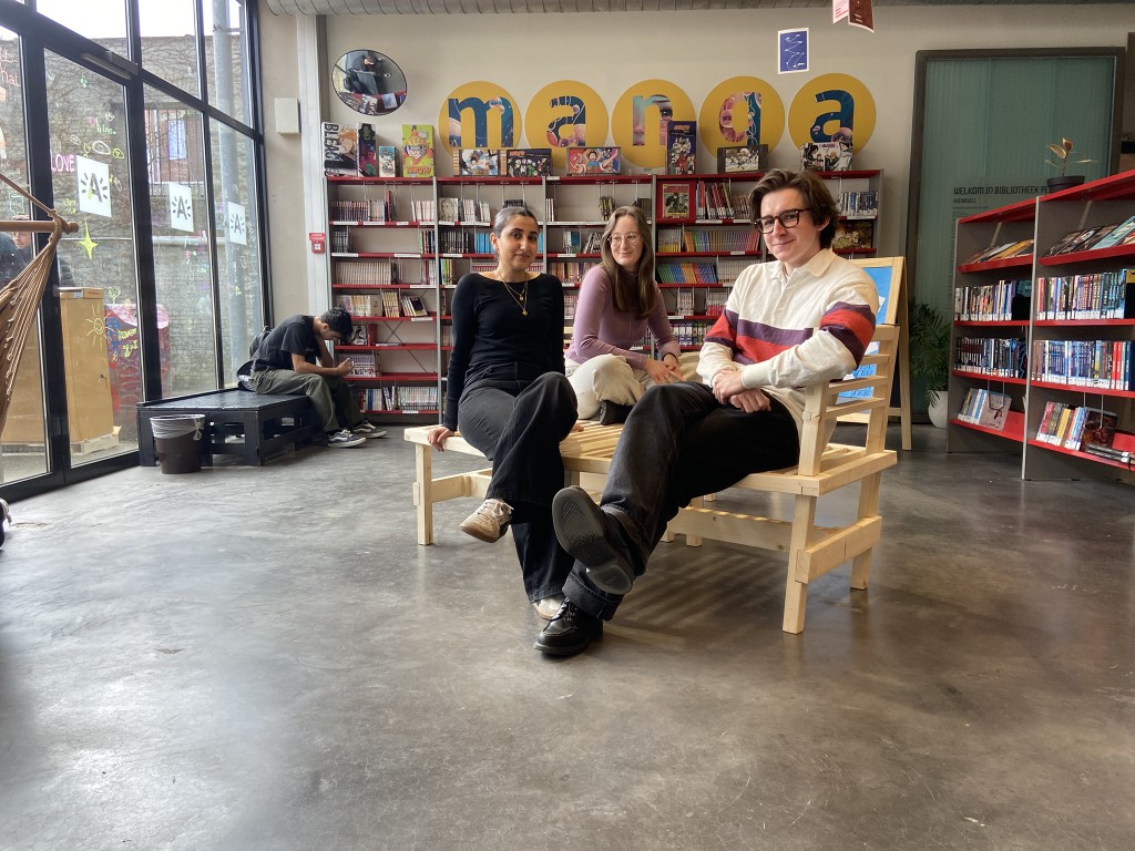 Wie de komende maanden een bezoek brengt aan Bibliotheek Permeke in Antwerpen, kan zich neervlijen op een van de nieuwe zitmeubels. Die werden ontworpen en vervaardigd door architectuurstudenten van de Universiteit Antwerpen.