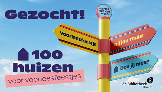 Van 4 tot en met 15 oktober is het Kinderboekenweek. Het thema dit jaar is ‘Bij mij thuis’. De Bibliotheek Utrecht organiseert daarom niet alleen activiteiten in de bieb, maar start de Kinderboekenweek op woensdag 4 oktober met 100 Voorleesfeestjes bij Utrechtse kinderen thuis! Opgeven kan via de website van de bieb. Wie meedoet ontvangt een gratis feesttas.