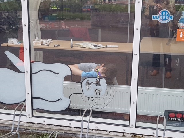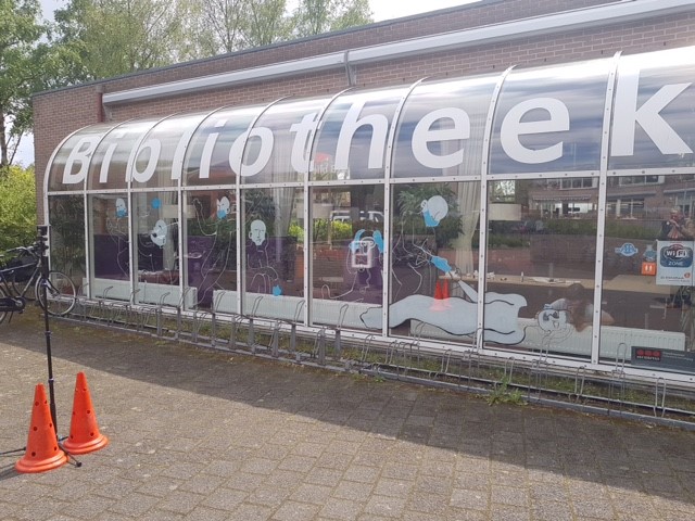 De ramen van de Bibliotheek in Nijkerk zijn door Lotte Wolf, tweedejaars student illustratie aan de Hogeschool voor de Kunsten in Utrecht., beschilderd met een kunstwerk over corona. Het kunstwerk bestaat uit raamschilderingen met speciaal krijt en is op de binnenkant van de ramen aangebracht. De beschilderde ramen blijven zichtbaar tot en met 10 juli 2021. Daarna wordt het weer uitgewist.
