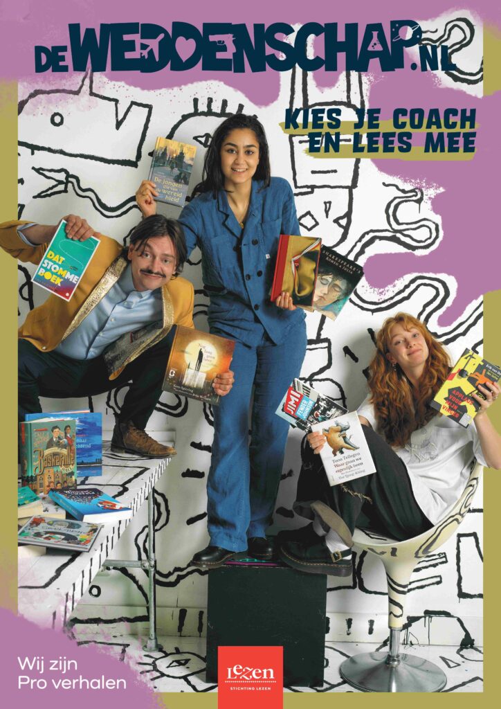 De drie BN’ers delen hun leeservaringen met de deelnemers met hun boekenvlogs. De veertiende editie van de leescampagne vraagt extra aandacht voor gedichten, beeldverhalen en graphic novels. ‘De Weddenschap’ is een campagne waarbij leerlingen boeken mogen lezen die ze zelf kiezen. Omdat leesbevordering maatwerk is, kunnen docenten en leerlingen met elkaar afspraken maken over het aantal te lezen boeken. Voor sommige jongeren is een boek al een uitdaging. De richtlijn is drie boeken in zes maanden.
