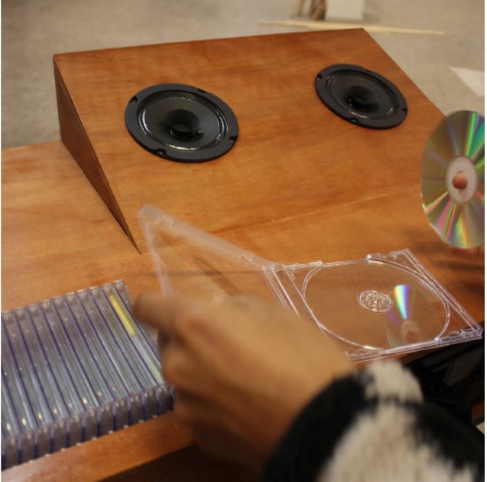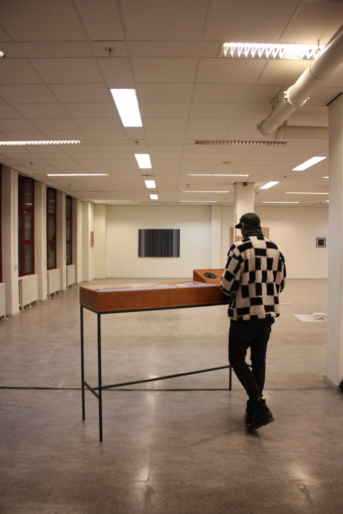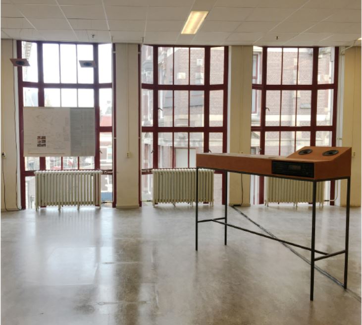 Elise ’t Hart heeft een fascinatie voor dagelijkse geluiden en richtte in het laatste jaar van haar studie aan de Hogeschool voor de Kunsten in Utrecht het Instituut voor Huisgeluid op, dat het begin vormt van een grote verzameling en documentatie van allerlei alledaagse omgevingsgeluiden. Ze wilde voor de tentoonstelling een installatie maken die refereert aan de oude Utrechtse bibliotheek, een ruimte die diende voor het lezen en uitlenen van boeken, voor studie, concentratie, onderzoek en stilte. ‘Het is een ruimte die mensen graag bezoeken juíst voor deze stilte. Wat maakt deze stilte zo bijzonder?,’ aldus ‘t Hart. Het verlangen naar de ‘bibliotheekgeluiden’ blijkt volgens ‘t Hart groot, vooral sinds de hele wereld massaal thuiszit: ‘“I miss being able to work at the library. So many distractions at home”, “This is perfect especially now we are all stuck home. I really miss my school’s library”. Library is een installatie die het onderzoek toont en de leegte in de ruimte opnieuw vult met deze stille klanken.’