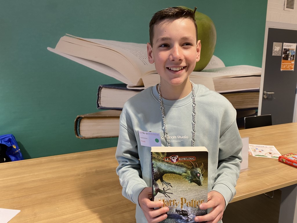 Ik ben in groep 5 begonnen met het lezen van de Harry Potter-serie. In groep 6 had ik ze allemaal gelezen. Voor vandaag heb ik Harry Potter en de relieken van de dood.