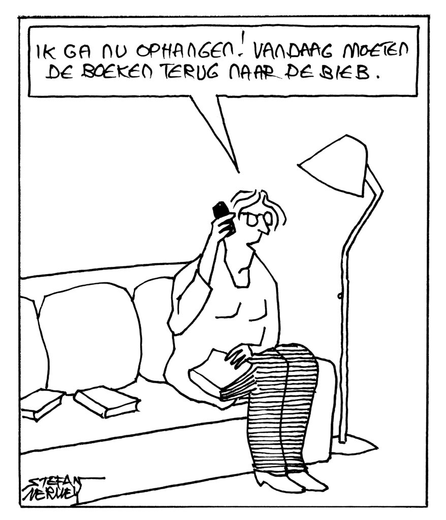 Eén van de vele cartoons die Stefan Verwey voor Bibliotheekblad tekende: