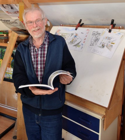 ‘Ik beschouw mezelf als een amateur, zij het een gevorderde amateur. Het woord amateur staat voor liefhebber, en dat ben ik. Ooit was ik in Rome en zat daar te aquarelleren. Een voorbijganger vroeg: “Kan ik die tekening kopen?” “Nee”, zei ik, “want ik ben met vakantie”. Wanneer een tekening voor mij geslaagd is? Als er een snel herkenbare visuele grap in zit. Hoe meer woorden in een cartoon, hoe zwakker die wordt.’