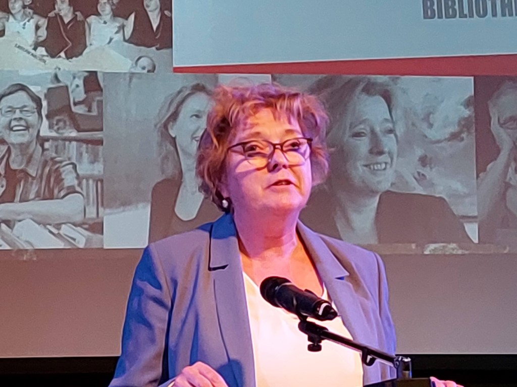 Daarna hield Anne Rube voorzitter (ai) van de VOB een emotioneel betoog over de voorloper van de VOB (Centrale Vereniging van bibliotheken; de CV). De CV werkte verregaand samen met de bezetter en anticipeerde op vragen van de bezetter. Vanaf de eerste dag van de bezetting hielden openbare bibliotheken er rekening mee dat de Duitsers boeken zouden gaan verbieden. De CV liep er zelfs op vooruit en deed na vragen van verschillende leeszalen op 19 mei een oproep tot loyale medewerking om boeken die ‘wrijving’ konden veroorzaken uit de circulatie te nemen. Later werden ook de Joodse bibliotheekmedewerkers liefdeloos ontslagen. Rube: ‘Mark gaat het leven na van deze ontslagen medewerkers: afkomst, opleiding, loopbaan, en wat er met hen gebeurde na hun ontslag. De verhalen komen – juist door hun feitelijkheid – binnen als mokerslagen. Hoe kan het dat dit zo heeft kunnen plaatsvinden?….’