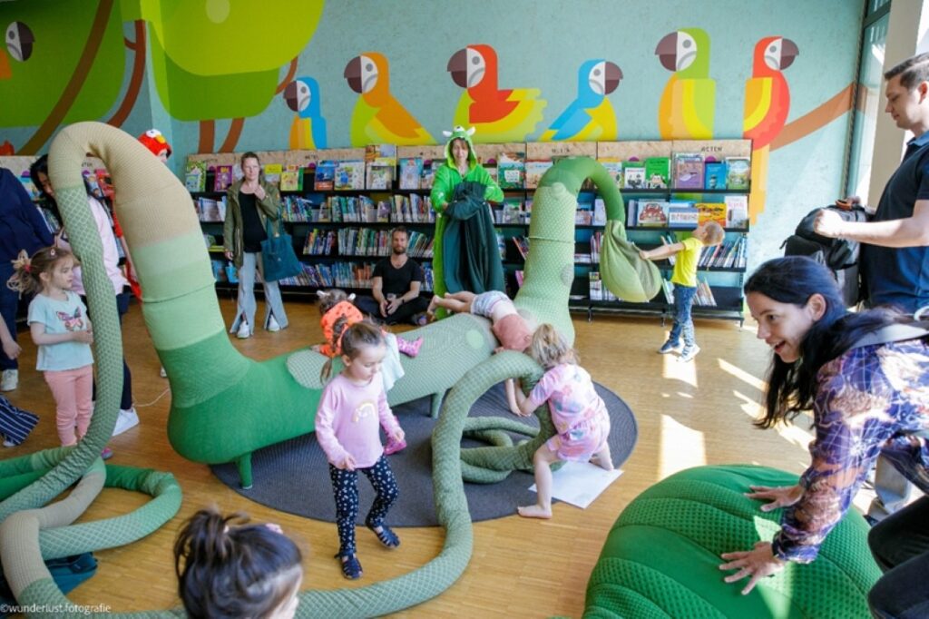 Kunstenaar Pieke Bergmans heeft zaterdag 13 mei het kunstwerk ‘Monsters…’ gedoneerd aan Bibliotheek Utrecht. Grote, aaibare monsters in allerlei vormen waar je op kunt zitten, lezen en uitrusten. Een bijzondere, blijvende aanvulling op de jeugdafdeling van Bibliotheek Leidsche Rijn Centrum.