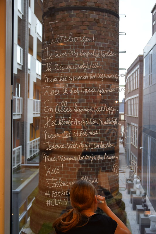 Leerlingen van de Christelijk Lyceum Veenendaal schreven in het kader van de poëzieweek prachtige gedichten op de ramen van de Bibliotheek Veenendaal. Ook de ramen van diverse winkels en lunchrooms werden voorzien van poëtische teksten.