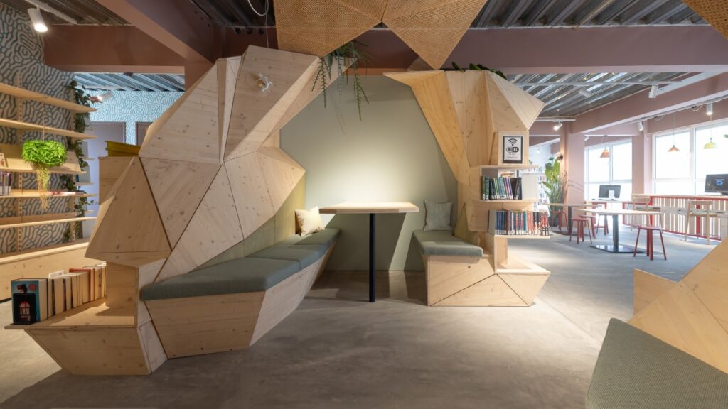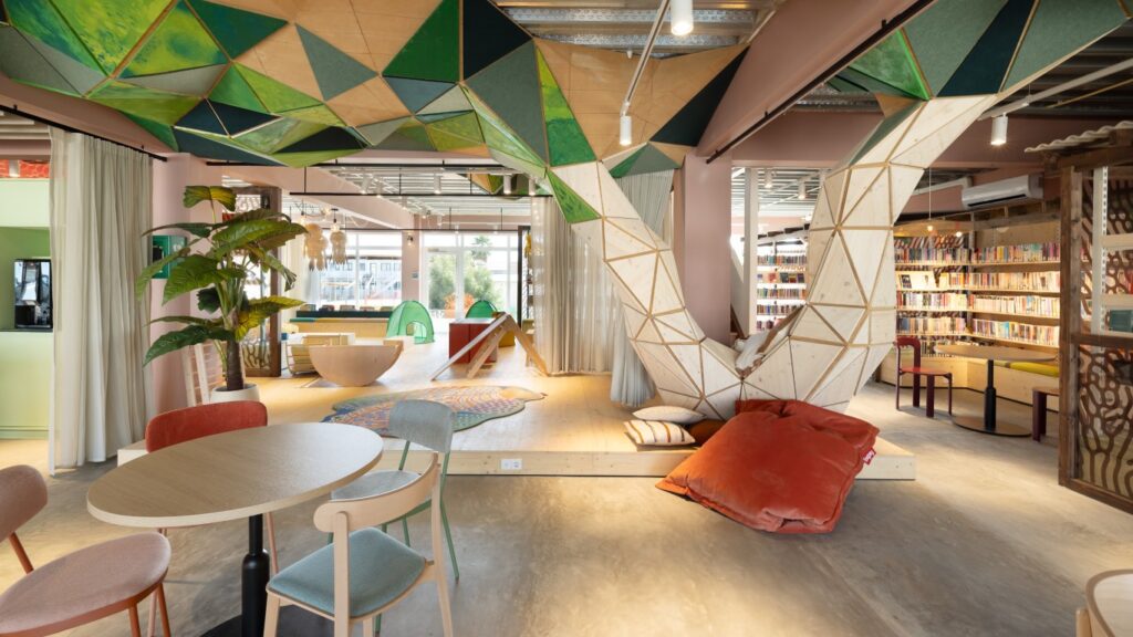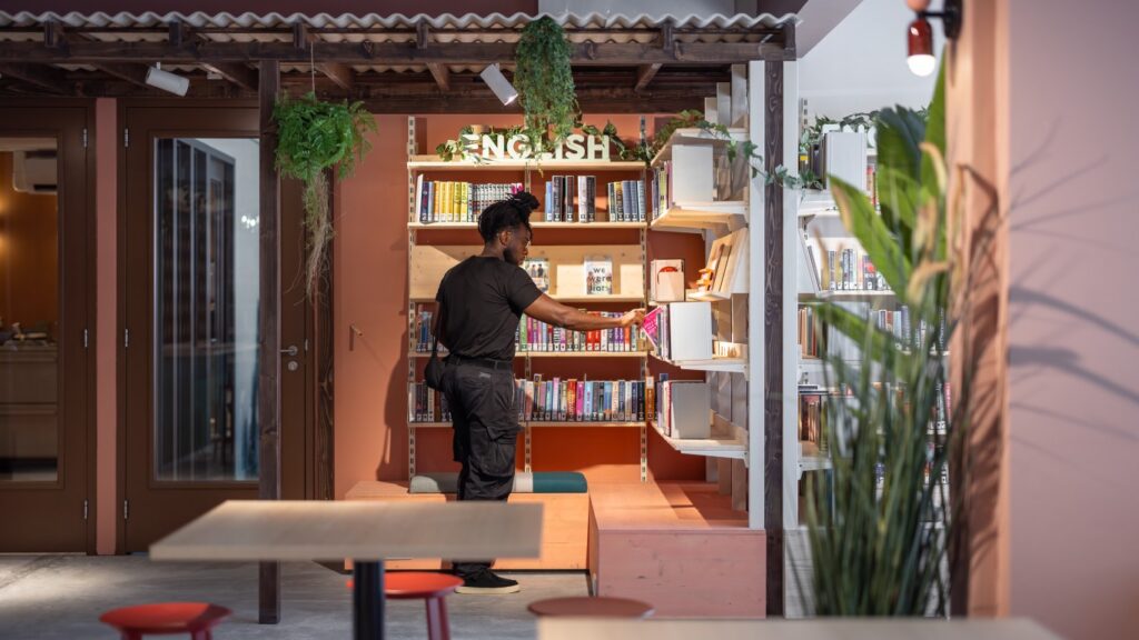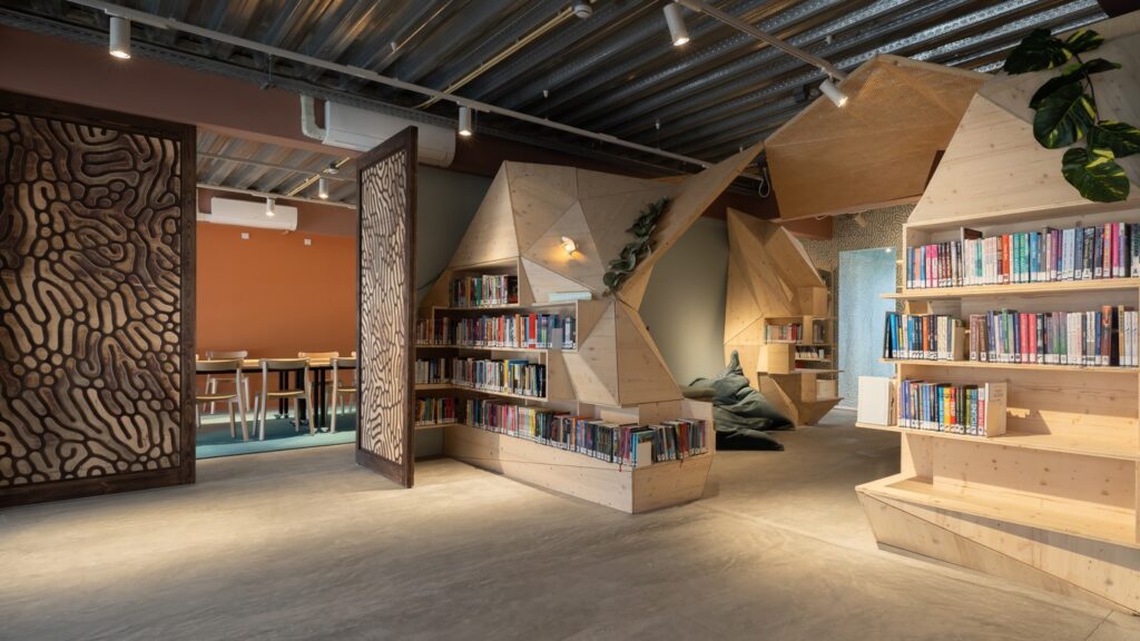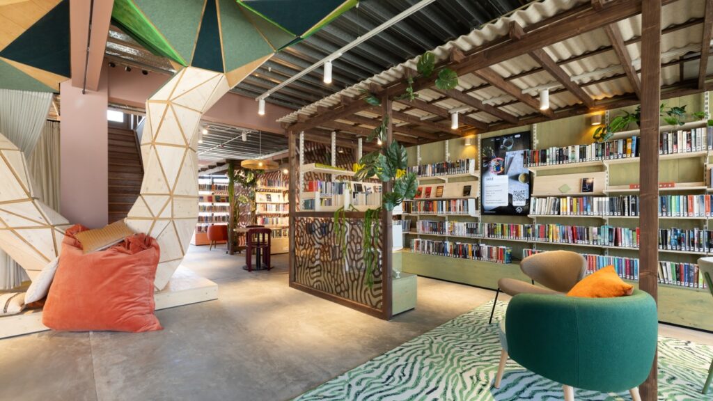 “De nieuwe bibliotheek is een voorbeeld van hoe een tijdelijke bibliotheek niet alleen functionele oplossingen biedt, maar ook bijdraagt aan sociale cohesie, educatie en cultuur,” legt architect Aat Vos van includi uit. “Het ontwerp weerspiegelt de visie van een inclusieve, toegankelijke derde plek voor iedereen, die zich in de toekomst zal blijven aanpassen en doorontwikkelen.”