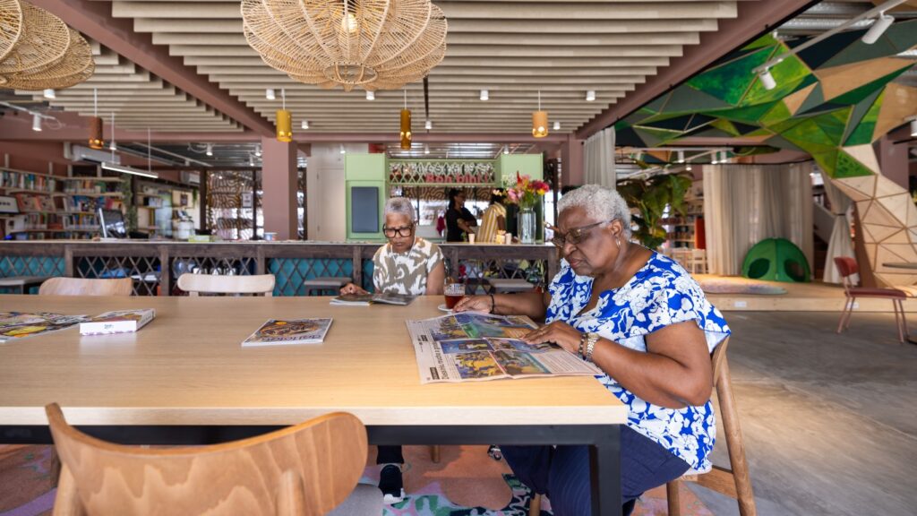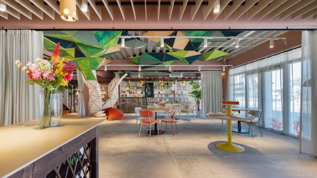 Toegankelijk, uitnodigend en vol lokale inspiratie: de langverwachte community library van Bonaire heeft officieel de deuren geopend. Het ontwerp van het Groningse bureau includi geeft kleur en warmte aan deze tijdelijke huisvesting – een plek die de gemeenschap verbindt en versterkt.