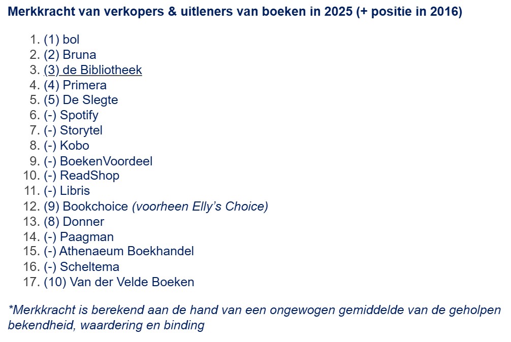 De bibliotheek staat al jarenlang op de derde plek onder de boekaanbieders, maar de afstand tot de topspelers bol en Bruna wordt kleiner. Door de stijgende kosten in het dagelijkse leven, stijgt de aantrekkingskracht van de bibliotheek. Het kopen van boeken wordt steeds duurder, waardoor lenen opnieuw in de lift zit. Tegelijkertijd is het vooral de moderne rol van de bibliotheek, met een eigentijdse en ontspannende programmering, die zorgt voor een herontdekking van deze publieke plek. Dit blijkt uit het Boekensector Merkenonderzoek van Hendrik Beerda Brand Consultancy.