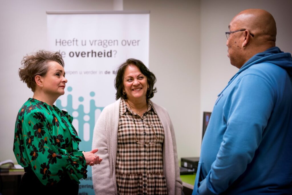 Welkom geheten door Sam Hermans, directeur Bibliotheek Den Haag, kreeg de staatssecretaris een rondleiding door de bibliotheek. Bij het Informatiepunt Digitale Overheid werd de staatssecretaris bijgepraat over de dienstverlening. Van Huffelen benadrukt het belang van een vertrouwde plek in de wijk voor laagdrempelige digitale ondersteuning: “De bibliotheek is een plek waar mensen graag en makkelijk binnenkomen. Met warmte, koffie en vriendelijke mensen. Waar we de bibliotheek vroeger vooral kenden als een plek om boeken te lenen, is het tegenwoordig veel meer dan dat. Het is óók de plek om bijvoorbeeld de taal te leren of computerles te krijgen. Aan de IDO-balie nemen medewerkers en vrijwilligers echt de tijd voor mensen en gaan rustig met de bezoeker kijken wat er moet gebeuren en hoe dat geregeld kan worden.”