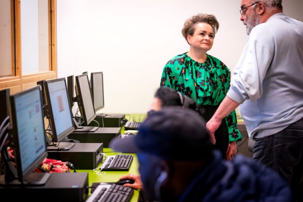Op 7 december bracht de staatssecretaris Koninkrijksrelaties en Digitalisering Alexandra van Huffelen een werkbezoek aan één van de negen Informatiepunten Digitale Overheid (IDO) van Bibliotheek Den Haag. Bij de bibliotheek in het Transvaalkwartier ontmoette de staatssecretaris bezoekers, medewerkers en vrijwilligers en sprak met hen over de verschillende hulpvragen: mensen die nog niet zo digitaal vaardig zijn of moeite hebben met de Nederlandse taal, of mensen die hulp kunnen gebruiken bij het vinden van hun weg binnen de overheid.