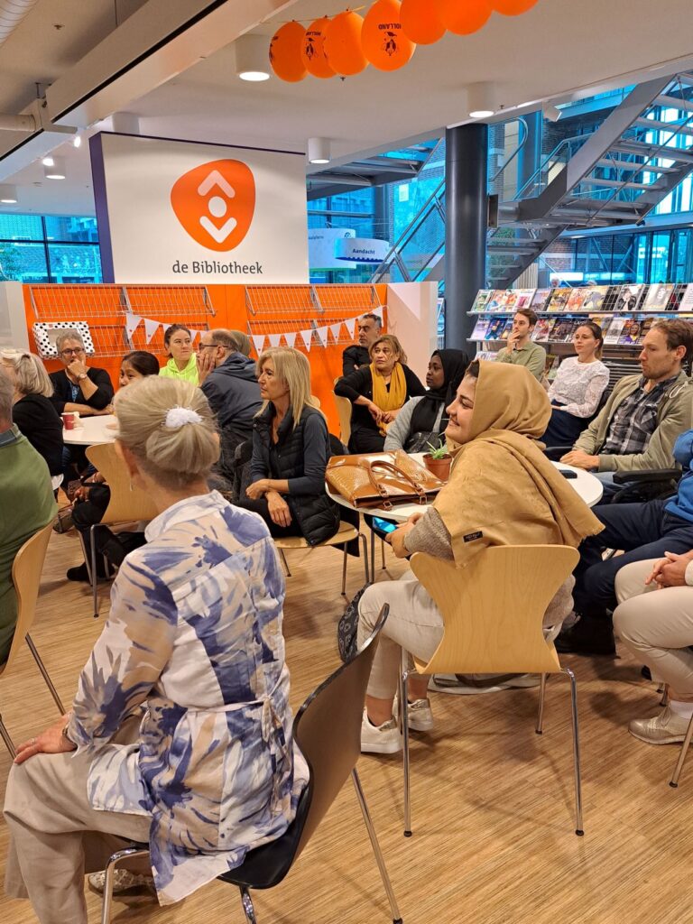 Grana, gevlucht uit Afghanistan, bedankte iedereen voor de taallessen. Zij is nog maar negen maanden in Nederland en spreekt al een aardig woordje Nederlands. Grana was in Afghanistan biologie lerares en is vast van plan om ook in Nederland aan de slag te gaan als docente. Nederlands kunnen spreken is dan ook erg belangrijk om deel uit te kunnen maken van de maatschappij. Na het officiële deel werd er genoten van een kopje koffie/thee met een taartje en hapjes gemaakt door de bezoekers van het Taalcafé. En konden (oud)bezoekers en begeleiders van het Taalcafé bijpraten.