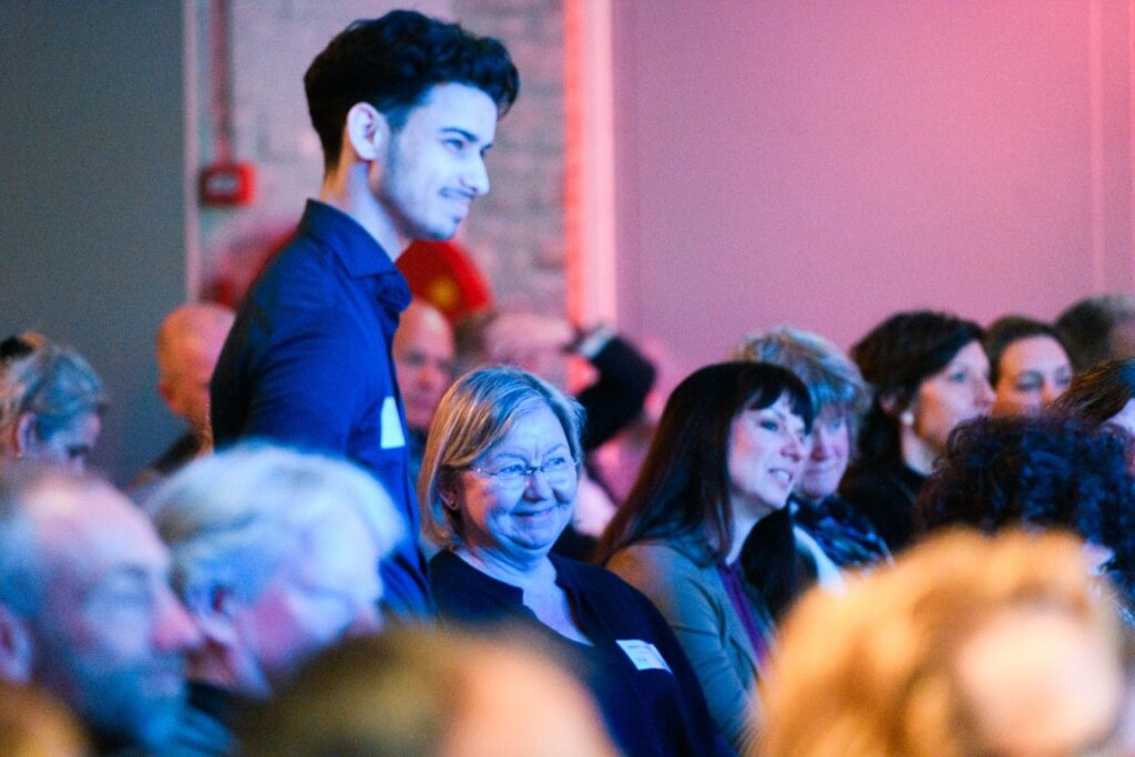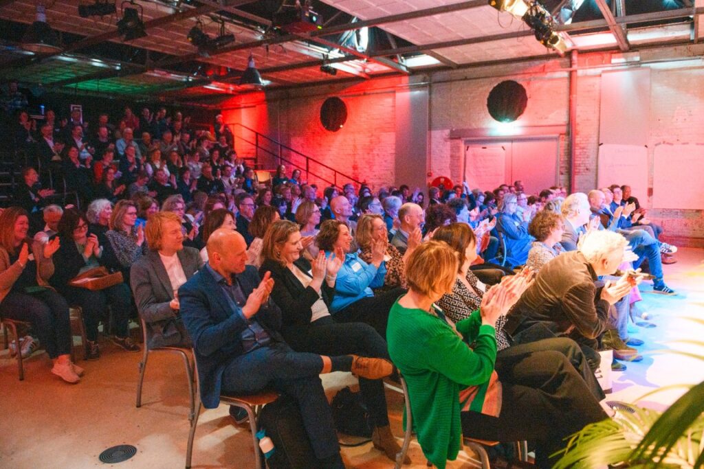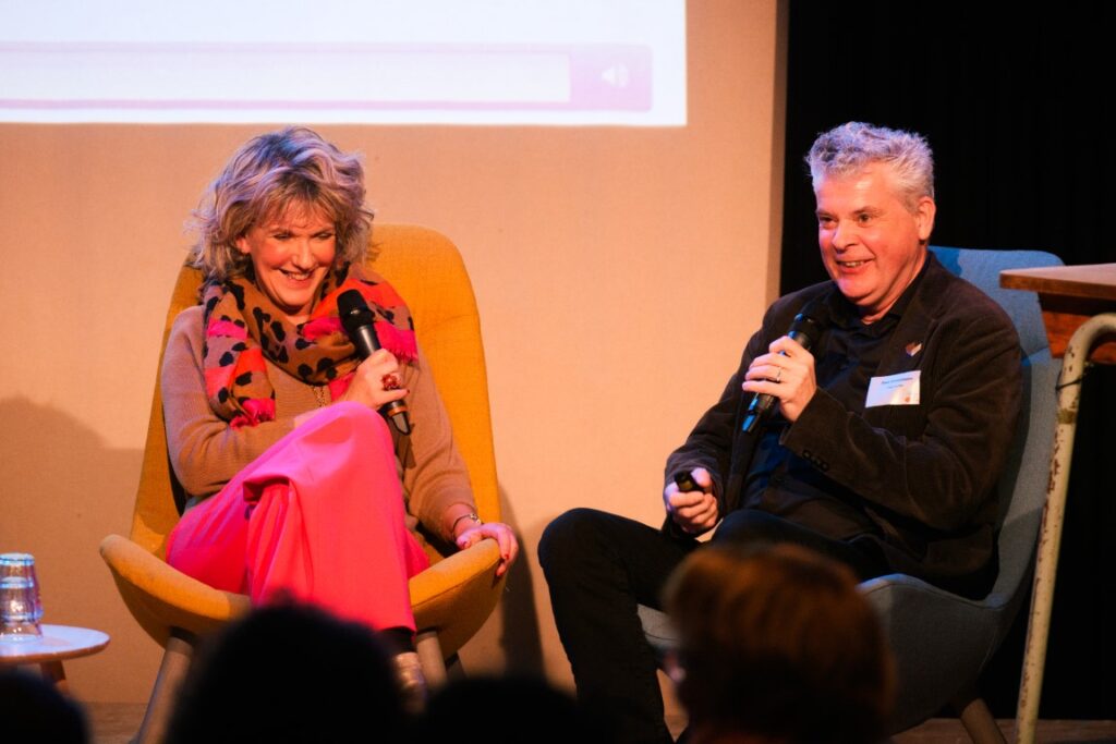 Na een smakelijke vegetarische lunch kon er gelachen worden met cabaretier Thjum Arts. Arts vermaakte de zaal met voor sommigen herkenbare anekdotes. Bijvoorbeeld over een rijles die hij had, waarbij hij de auto niet aan de praat kreeg voor een stoplicht en daarna iedereen met 80 kilometer per uur langs hem heen raasde. Een prachtige metafoor voor mijn leven, wilde hij tegen zijn rijinstructeur zeggen, maar die vond vooral dat hij ‘DOOR! DOOR!’ moest gaan. Het leidde tot een pleidooi voor luisteren naar elkaar, voor aandacht. Want er is een tekort aan aandacht en een overschot aan advies. Een advies (dat dan toch weer wel) dat de aanwezigen goed onthouden hebben, want het kwam de rest van de dag nog vaak terug.