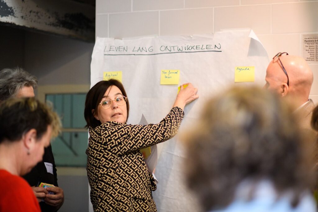 Het luisteren keerde bijvoorbeeld terug bij de tafelgesprekken die volgden. De aanwezigen waren ingedeeld bij verschillende thema’s, zoals de maatschappelijke opgaven: Geletterde samenleving, Participatie in de informatiesamenleving en een Leven Lang Ontwikkelen. Maar ook: LDI, WAU-trajecten, Wsob en zorgplicht en de twee koersgroepen Innovatie en Kennis en kwaliteit. Aan tafel konden de collega’s input leveren: op welk resultaat waren ze trots, en wat kan er beter bijvoorbeeld. De organisatie wilde hier vooral ophalen, luisteren. Of in de woorden van de update van de Netwerkagenda: oogsten. Dit moest ook bouwstenen opleveren voor het nieuwe convenant, dat hopelijk eind september ondertekend kan worden.