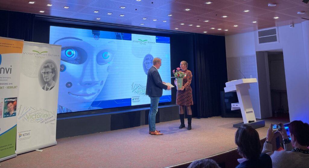 Jaarlijks onderscheidt het Victorine van Schaickfonds publicaties, initiatieven en scripties op het gebied van het bibliotheek- en informatieterrein. Meer informatie vindt u knvi.nl/victorine Dit jaar hebben vijftien inzendingen meegedongen naar één van de ‘Victorines’ 2024. De prijzen zijn aan de winnaars overhandigd tijdens het KNVI event Generatieve AI en de informatieprofessional op 7 november 2024 bij de KB, Den Haag.