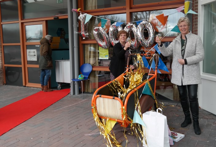 Op vrijdag 9 april kwam mevrouw van Hees uit Berkhout nietsvermoedend haar verrassingstas ophalen bij de Bibliotheek De Goorn. Tas nummer 10.000. Op haar bestelformulier stond als wens: ‘Ik laat me verrassen.’ Dat deed de Bibliotheek dan ook: ze werd ontvangen met een rode loper, alcoholvrije bubbels, slingers, een tas vol lokale lekkernijen en natuurlijk haar verrassingstas met boeken. Het was niet de eerste keer dat ze een tas bestelde. Ze is erg blij met de dienst die speciaal opgezet is vanwege de coronabeperkingen.